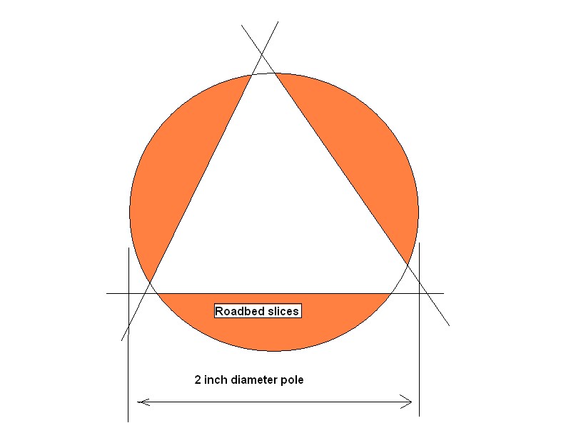 I was looking in Lowes and Home Depot today, cleaned Lowes out of 9 all-thread 4-40 rod, I need some 1 inch radius round stock cut in slices longways. I found some 4' long 2-inch diameter wooden poles, I could make a jig for a table saw or flip my circular saw, and cut 3 or four side wedges off it, to make a roadbed that would fit inside which the track could lay on. I searched both stores, looked at doorsill plates, and any other possibility of premade rounded roadbed, but found nothing usable today. I will look online to see if I can find anything pre-made that might be used for internal roadbed. If anyone has any suggestions, let me know.