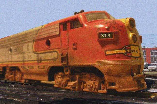 I haven't really even begun to buy or add buildings... I also plan to weather some of my non-tyco engines and rolling stock for some future videos. Here's a photo of a cheapy Life-Like F-series diesel that I weathered and photoshopped onto a real background.