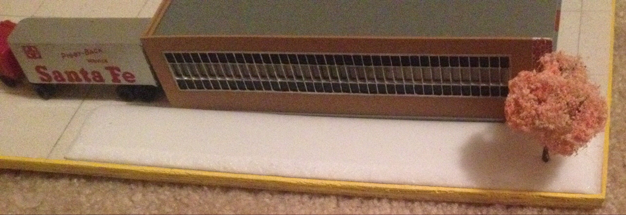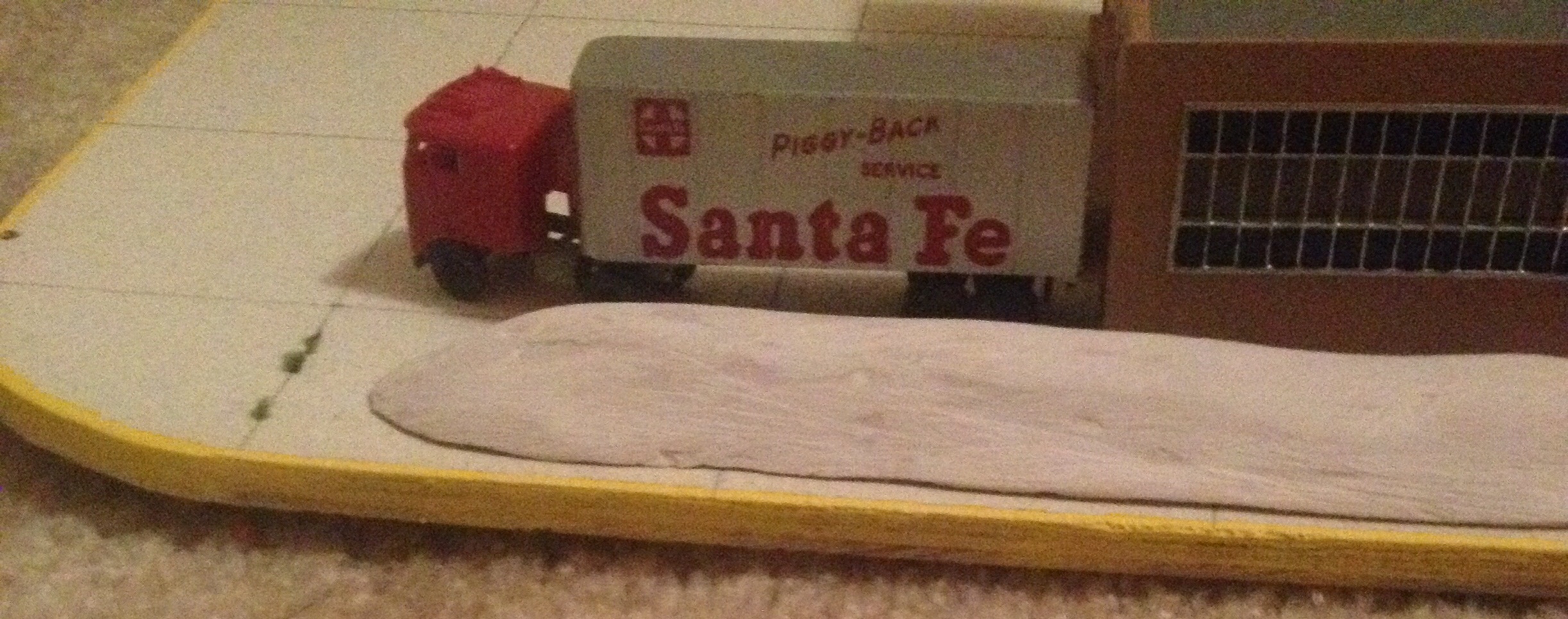 3RD pic is the top side of the same piece. I don't think it looks good beside the 7-UP building. Again this small use of body filler was done inside the house, and this time no one in the family mentioned any odor..