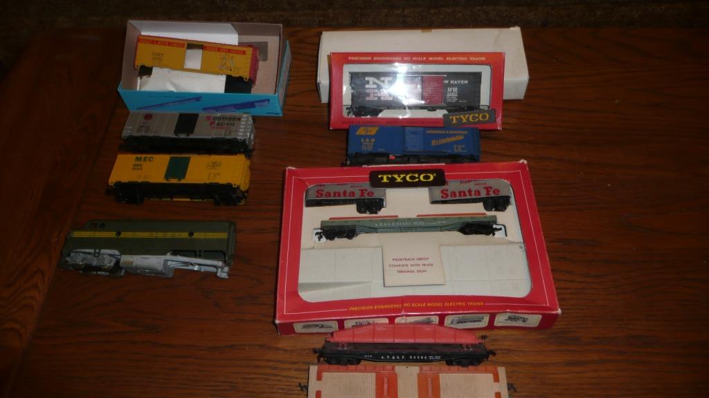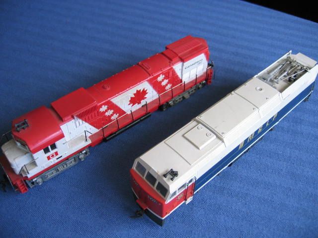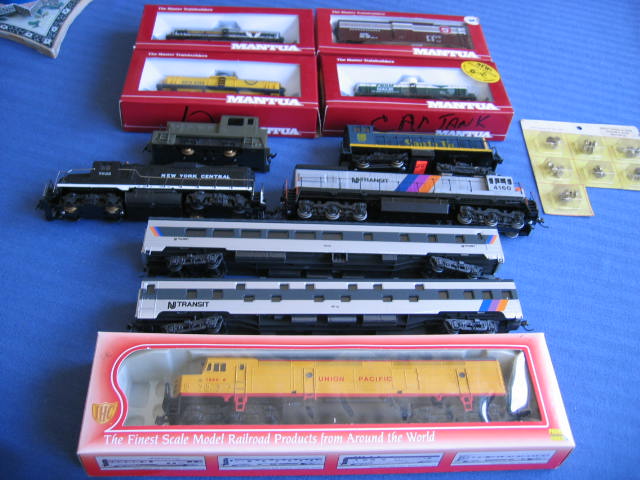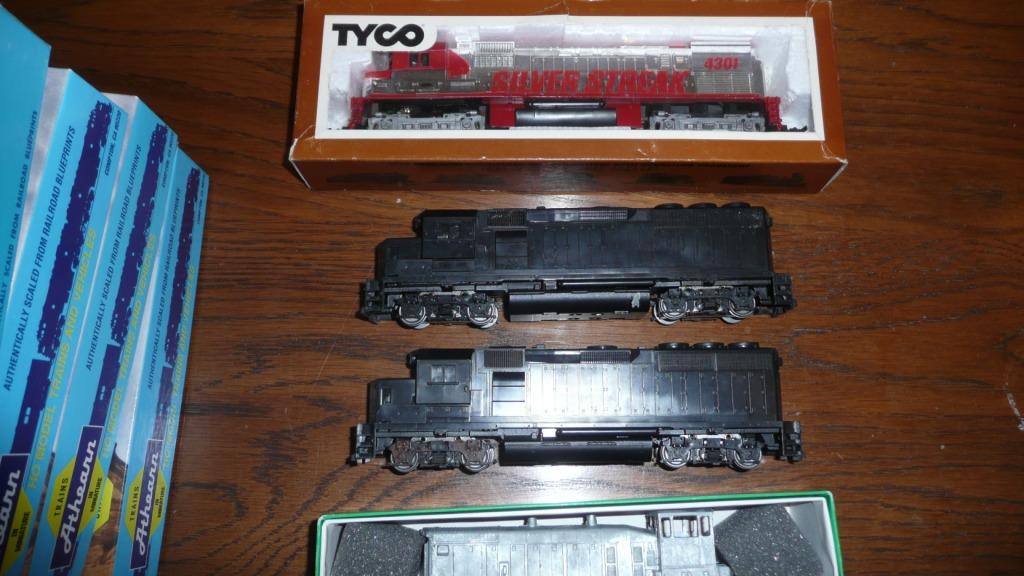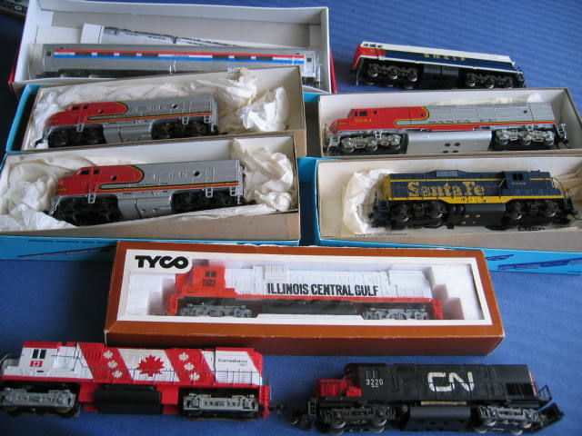 Walther's Metroliner Cafe Car-$5 Tyco Ill Cnentral Gulf 630-$7 Athearn beater CN engine for parts-$10 Athearn F45 SF Passenger engine-$12 Athearn GP-9 SF engine-$8 Athearn F7 Power & Dummy engines= $18 American GK E60CF- $10 Tyco 430 Alco Canadania- $25
