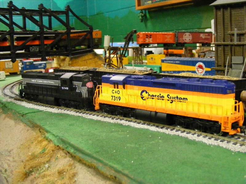 So at a show last year my friend bought the IHC Chessie SD24 you see in this picture. He got it for 20 bucks I think at a greenberg show? And there were more, and for some reason I passed on getting one myself. Time rolls by, IHC goes under and their take on the SD24 is usually a rare site at local shows. Making it worse was the fact I decided to start building a fleet of Chessie locomotives that never existed (since everyone and their mother used the Cheesie livery on something that they never owned in real life, why not collect them!). Low and behold IHC sorta opened their doors back up for business and had a few SD's left over to sell. My friend likes Chessie but is becoming a HUGE New York Central nut. I never even knew there was a NYC SD24 till I saw it on the site. So now, in a nice trade the Chessie now falls under my ownership and he gets a pretty sweet looking NYC unit out of the deal. We are both happy with how this worked out lol.