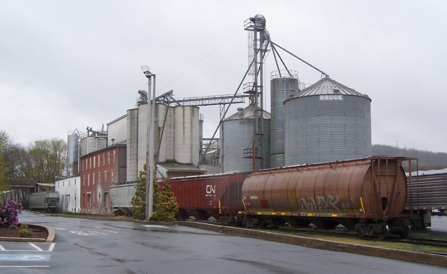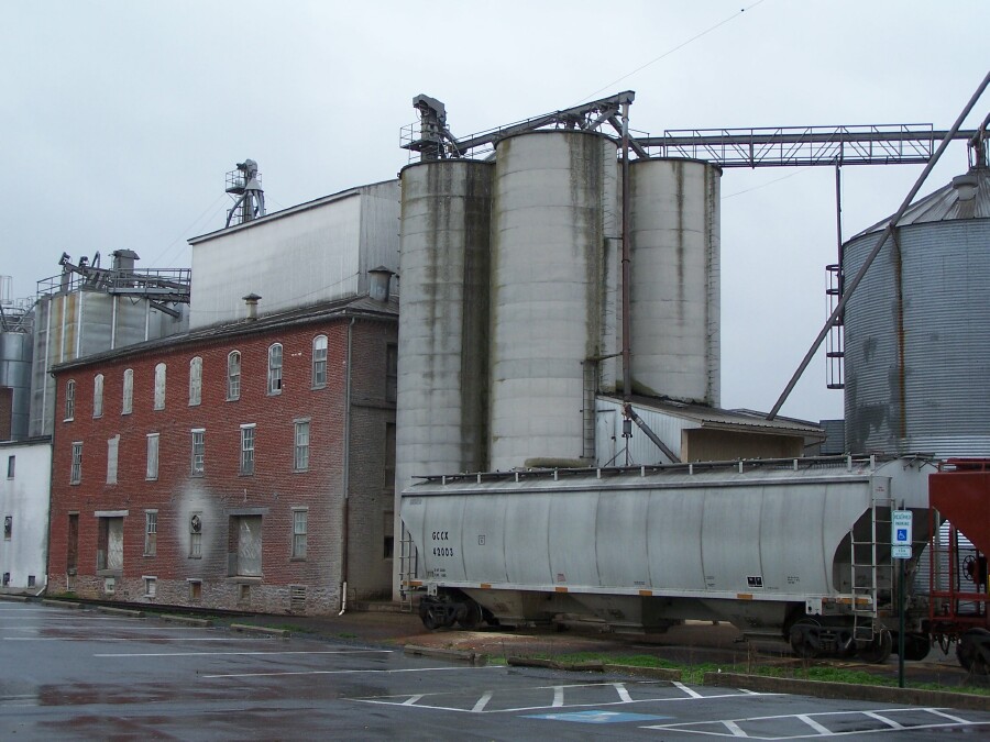 Look at the second image, the red brick building , the fan on the side has created a gray "cloud" on the brick. Neat feature, would be fun to model. Maybe a cement factory? Or paint? Don't know. This was in Denver, PA.