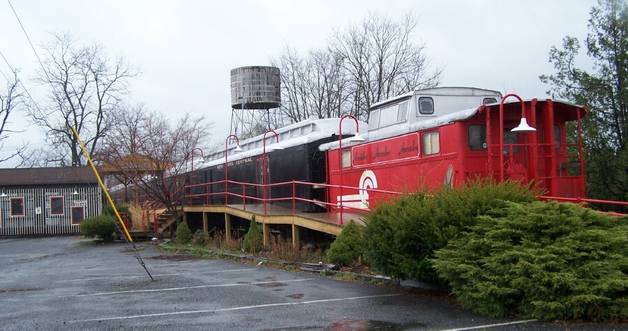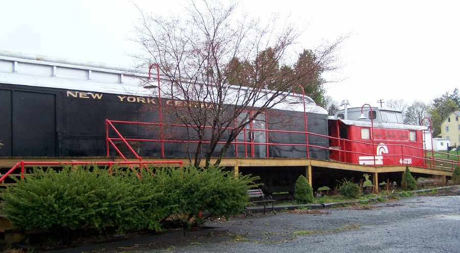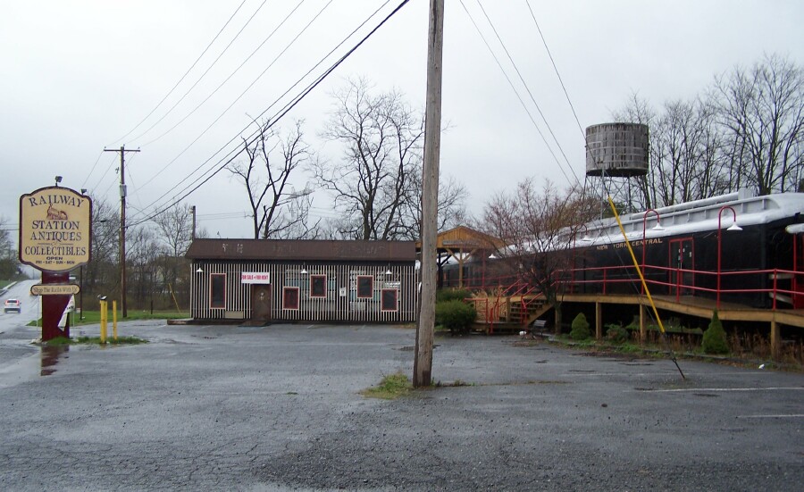 Here's a neat place that would make an awesome Train club hangout! They've got 2 passenger cars and a caboose as a former antique mall. Up for rent or sale according to the sign on the door of the building shack/office. Any takers? This is near Ephrata, PA. Too cool!
