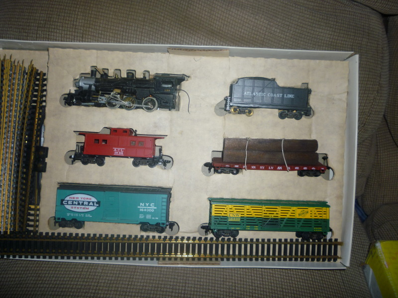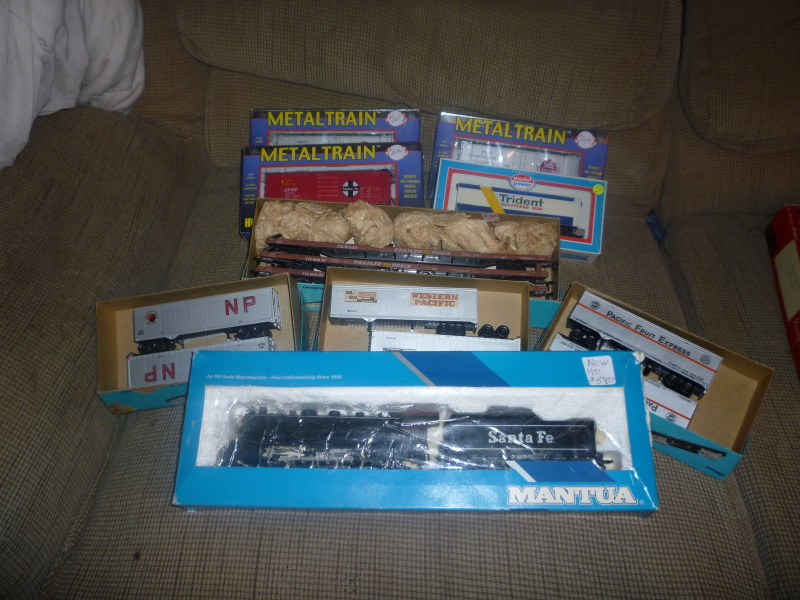 Metal Train cars 5.00 each (all mint) Model Power Trident Sugarless Gum car 3.00 Athearn Blue Box TOFC with Blue Box trailers 20.00 Mantua Mikado 40.00 (mint/unrun)