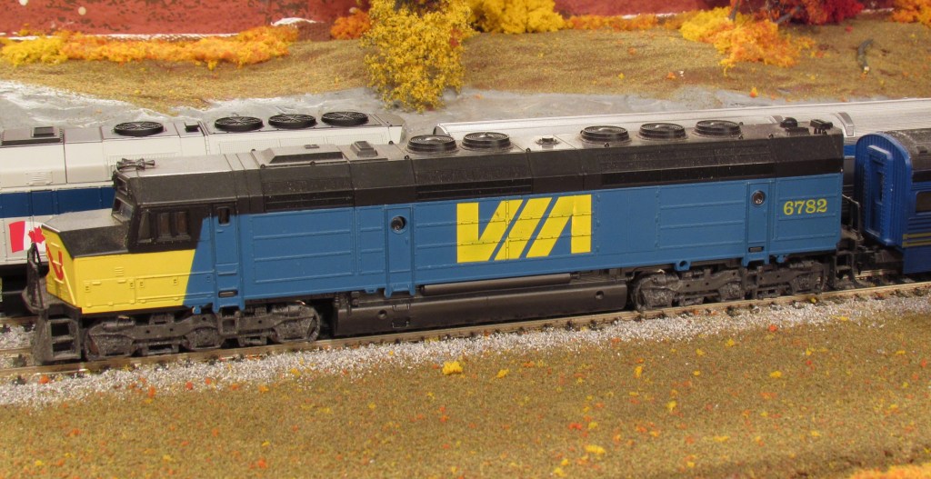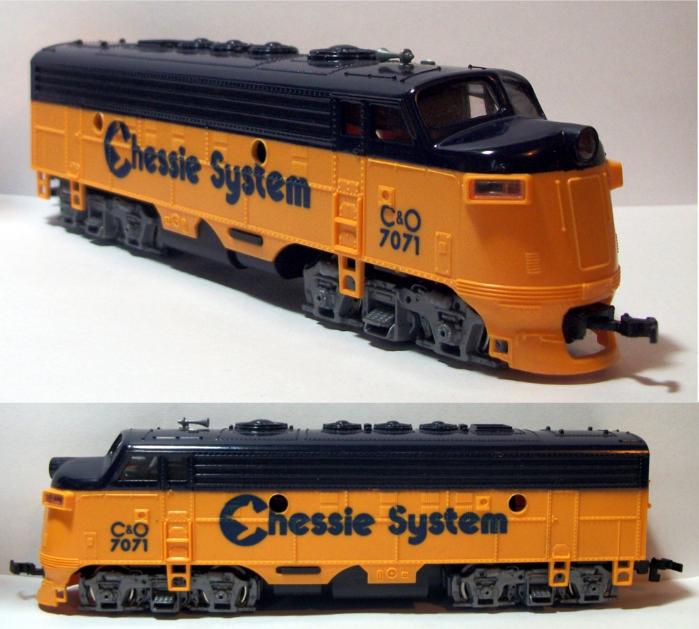 Here is a Bachmann F9 Chessie system engine. It is very light. It is another garage sale / flea market find. It is part of a complete Diesel Express set.