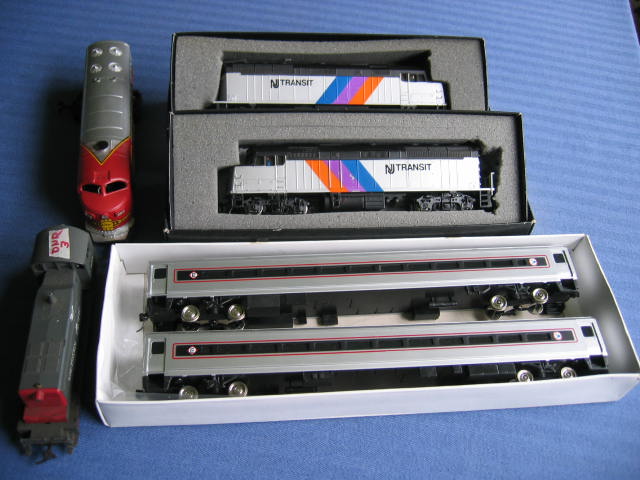 The NJ Transit F40PH's are the earlier Bachmann Spectrum Hong Kong version with the flashing strobe lights on top of the Cab. All of these have issues with the decals on one side.